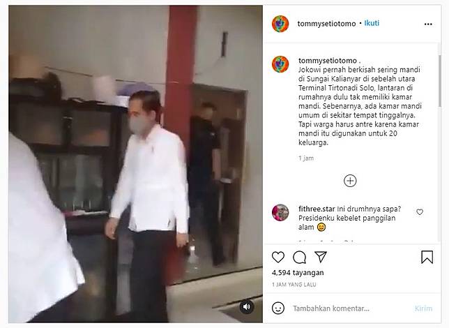 Viral terkait presiden indonesia terekam dalam sebuah video dimana orang nomer satu di indonesia tersebut menumpang kamar mandi warga, sontak saja video yang di unggah di akun media sosial Instgram tersebut mendapatkan banyak Komentar